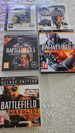 Conjunto de cinco videojuegos de la saga Battlefield para PlayStation 3. - Battlefield: Bad Company - Battlefield: Bad Company 2 - Battlefield 3: Limited Edition - Battlefield 4: Deluxe Edition - Battlefield Hardline: Deluxe Edition