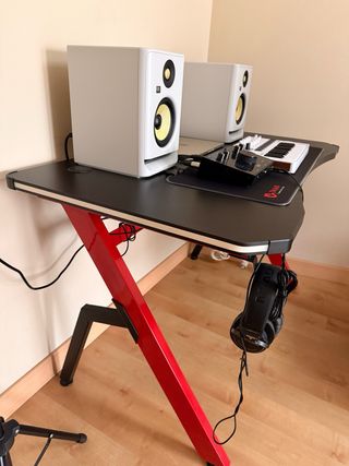 Mesa de escritorio de estilo gaming en color negro con patas rojas marca homcom. Ideal para tu setup. En Tudela, Navarra - Diseño moderno. - Superficie amplia. - Patas de metal robustas. - Luces led Nueva cuesta 120 euros
