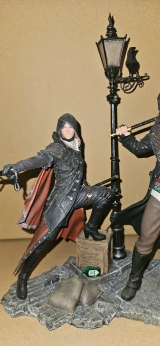 Figura coleccionable de Assassin's Creed Syndicate. - Representa a los personajes principales en una escena urbana. - Incluye farola y detalles del entorno. - Fabricado por Ubisoft.