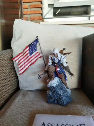 Edición coleccionista de Assassin's Creed III. - Figura de Connor con bandera americana. - Caja metálica coleccionista. - Libro de arte. - Postales - No incluye juegos.