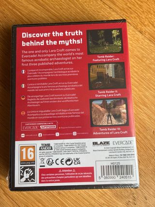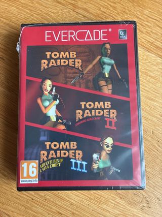 Cartucho de Evercade con la colección de juegos de Tomb Raider. - Incluye Tomb Raider I, - Tomb Raider II Starring Lara Croft, - Tomb Raider III Adventures of Lara Croft.