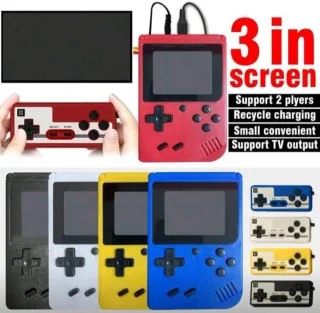 Ideal regalo,cumpleaños y navidad. Consola retro portátil con videojuegos incorporados(mario beos,Mickey mouse,cars,tortugas ninjas... Ideal para estas navidades, para regalar a niños y adultos,yo he regalado 3 y he triunfado,les ha encantado. - con opción a multijugador( 2 jugadores) - Cable para cargar incluido -batería aguanta todo el día -cable para enchufar en TV ADEMÁS REGALO OTRA CONSOLA DE COLOR AZUL MARINO
