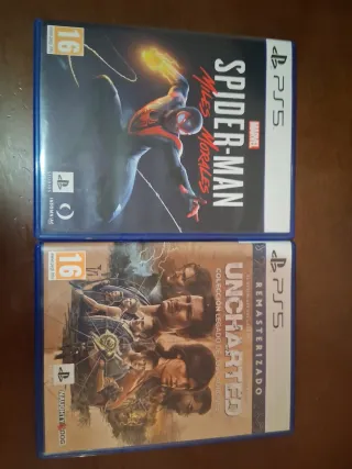 Dos videojuegos para PlayStation 5. - Marvel's Spider-Man: Miles Morales. - Uncharted: Colección Legado de los Ladrones (incluye Uncharted 4 y El Legado Perdido). - Ambos juegos son para PS5. - Precio por los 2, 28 euros