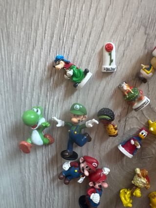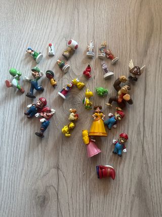 Lote de figuras de personajes de Nintendo y Disney. Son figuras coleccionables, algunas de ellas en muy buen estado. - Incluye un total de 28 figuras. - Hay personajes de Super Mario, Donkey Kong y otros personajes de Nintendo. - También se incluyen algunas figuras de Disney. - Son figuras pequeñas, ideales para coleccionistas.