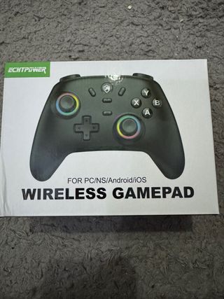 Mando inalámbrico de la marca Echtpower, compatible con múltiples plataformas. - Diseñado para PC, Nintendo Switch (NS), Android y iOS. - Conexión inalámbrica para mayor libertad de movimiento. - Incluye botones A, B, X, Y y cruceta. - Joysticks con iluminación LED.
