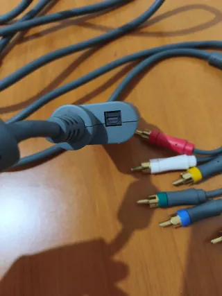 Cable de vídeo y audio para Xbox 360. - Conexión AV con múltiples salidas RCA. - Conector propietario de Xbox 360.