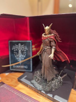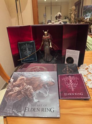 Edición coleccionista de Elden Ring para PC incluye: - Caja especial - Póster - Cartas de arte, pegatinas y parche de tela - Estatua de 23cm de Malenia – Espada de Miquella - Caja Steelbook exclusiva - Libro de arte de tapa dura de 40 páginas (precintado). No incluye juego ya que era una versión digital para PC.