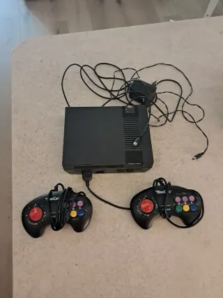 Consola Nintendo Entertainment System en buen estado, sin golpes. Como se ve en las imágenes. Incluye: - Juego Super Spike V'ball. - Dos mandos originales. - Cable AV y adaptador de corriente nuevos. - Funciona perfectamente. Se envía por wallapop.