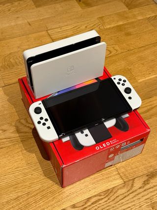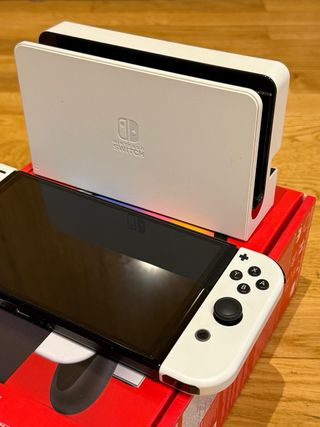 Consola Nintendo Switch modelo OLED en color blanco. Incluye la base de carga y los mandos. - Pantalla OLED. - Diseño elegante en blanco. Como a estrenar!