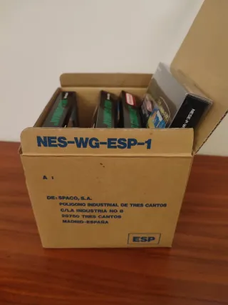 Caja de distribución original para el juego Trick Shooting de Nintendo NES. Incluye la caja de cartón con la referencia NES-ZT-ESP-1 y el logo de ESP. - Caja de distribución de cartón. - Referencia: NES-ZT-ESP-1. - Incluye información de SPACO, S.A. en Madrid-España.
