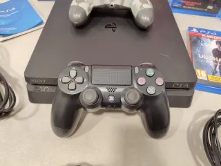 Consola playstation 4 slim de 1 TB negra, en perfectas condiciones. Con 11 juegos: -Fifa 17 -Fifa 18 -Grand theft auto 5 -God of war -Uncharted collection 1,2,3 -Uncharted 4 -Farcry primal -Farcry 4 -Sudden Strike