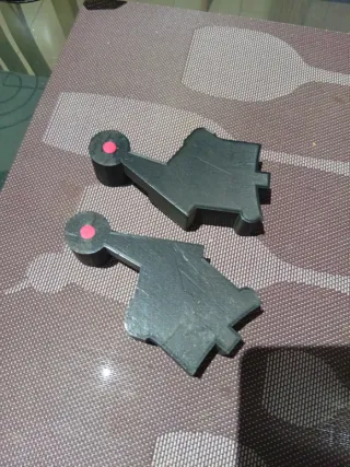 Par de palancas de empuje para simulador de avión. Piezas negras con detalles circulares en rojo. - Diseño en plástico negro. - Dos unidades incluidas.