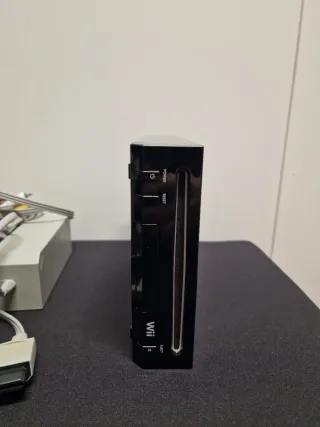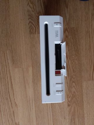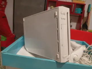 Consola Nintendo Wii en color blanco, lista para usar. - Incluye todos los cables necesarios. - Mando Wii Remote y Nunchuk. - Base para colocar la consola en vertical.