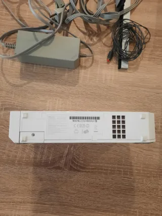 Está usada pero funciona perfecto. La vendo con los accesorios de las fotos: 2 mandos con adaptador motion plus + 2 fundas + 2 nunchuk + mando classic controller + barra de sensores + arm Tengo 5 juegos que se venden a parte ver última foto. Si quieres algún mando suelto pregunta precio. Hago pack con juegos