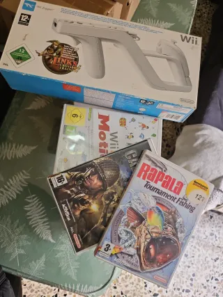 Pack de accesorios y juegos para Nintendo Wii. - Incluye el accesorio Wii Zapper. - Juegos incluidos: Link's Crossbow Training, Wii Motocross, Rapala Tournament Fishing y Call of Duty. - Todos los juegos son para la consola Wii.