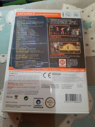 Juego Just Dance 2 para Wii en buen estado.Incluye el disco y la caja. El disco presenta señales propias de uso pero está comprobado recientemente y funciona a la perfección. Si se compra junto al Just Dance 4, también en venta, precio conjunto de 8€, o otra combinación de juegos, consultad