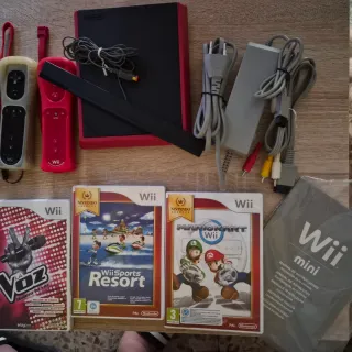 Vendo Nintendo Wii Mini (edición roja) en muy buen estado estético y funcional. La consola ha sido revisada, limpiada y probada, funciona perfectamente y lee los discos sin problema. Incluye: • Consola Nintendo Wii Mini roja • Mando original • Cable de alimentación • Cable AV original Estado: • Totalmente funcional • Muy cuidada, sin golpes ni daños • Lector en perfecto funcionamiento • Ideal para jugar o para coleccionistas La Wii Mini es una versión especial y más rara que la Wii clásica, difícil de encontrar en este estado. Entrega en mano o envío por Wallapop. No cambios. Precio ligeramente negociable.