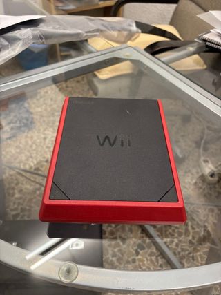 Consola Wii Mini en color rojo y negro. Sin cables. Funciona correctamente.