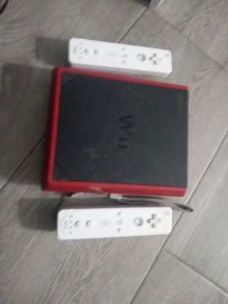 Consola Wii en llamativo diseño bicolor. - Incluye dos mandos. - Color principal negro con detalles rojos.