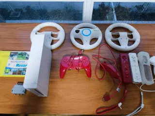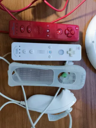 ¡Ideal para jugar en familia o con amigos! Vendo pack completo de accesorios para Nintendo Wii en perfecto estado de funcionamiento. Incluye todo lo necesario para juegos de carreras como Mario Kart. El pack incluye: 1 Mando Wii Remote Plus (Blanco original). 1 Mando Wii Remote con funda personalizada de perrito (rosa). 2 Nunchuks (Blanco y rosa a juego). 2 Volantes PlayTools (Rojo y Azul) para una experiencia de conducción total. Correas de seguridad incluidas en todos los mandos. Todo ha sido probado y funciona perfectamente. Entrega en mano o envío rápido por Wallapop Envíos. ¡En mi perfil más cosas de Nintendo!