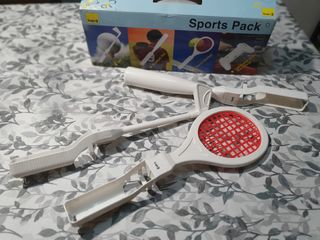 Vendo pack de Wii Sports. Incluye una raqueta de tenisun palo de golf y un bate de beisbol, todos en buen estado. - El pack está completo y en su caja original. - Perfecto para disfrutar de los juegos deportivos de Wii. - Accesorios en muy buen estado.