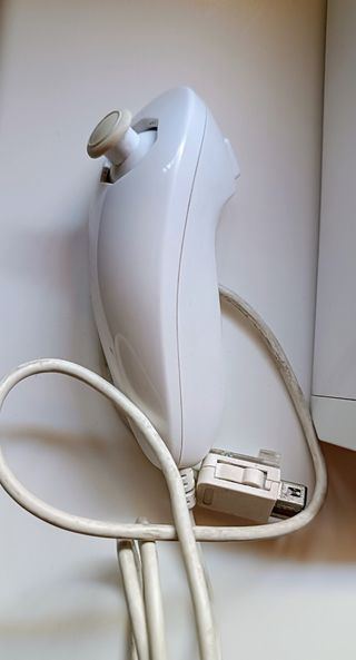 Vendo mi consola Nintendo Wii, de color blanco. Incluye: - Consola Wii blanca en buenas condiciones. - 2 mandos Wii Remote Plus. - 3 Nunchuk. - Volante para juegos de conducción. - Sensor de movimiento. - Juego Wii Sports y msrio Kars originales - Cargador para mandos y pilas - Cables AV.