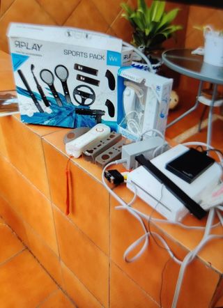 Vendo mi consola Nintendo Wii en buen estado. Incluye un pack deportivo con accesorios. - Consola Nintendo Wii. - Pack deportivo con accesorios (raqueta de tenis, volante, etc.). - 2 mandos Wii Remote con sus correspondientes nunchucks. - Sensor de movimiento Wii.