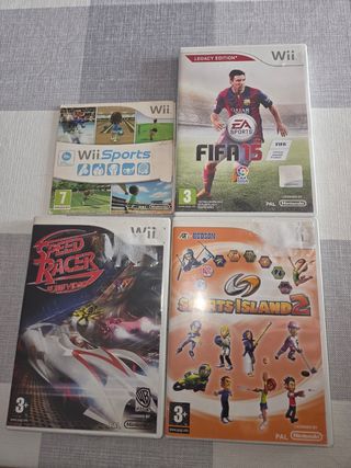 Pack de cuatro videojuegos para Nintendo Wii. - Wii Sports - FIFA 15 Legacy Edition - Speed Racer - Sports Island 2