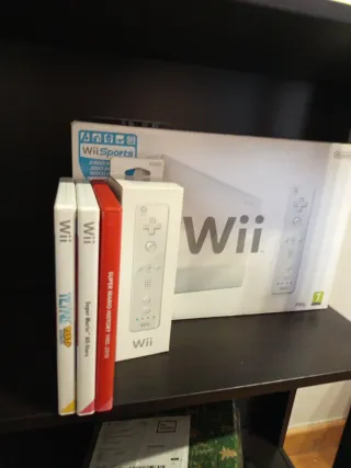 Consola Nintendo Wii en color blanco, con su caja original e incluye el juego Wii Sports. - Incluye mando Wii Remote y Nunchuk. - Juegos adicionales: Super Mario All-Stars y Super Mario History 1985-2010. - tetris party Deluxe. - dos mandos uno de ellos original. -funcional y con adaptador hdmi