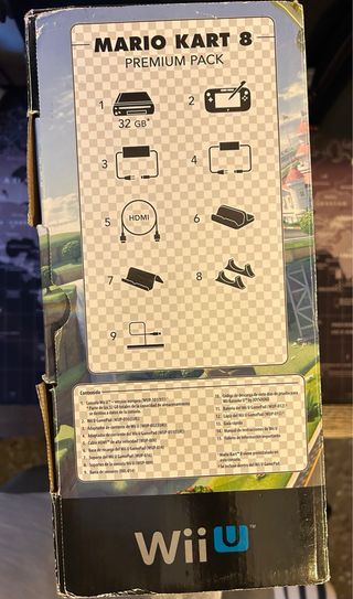 Consola Nintendo Wii U en color negro con 32GB de almacenamiento, incluye el juego Mario Kart 8 Premium Pack Preinstalado. Muy poco uso, se entrega con sus embalajes y caja original. Regalo Accesorios adicionales. 2 Mandos Inalambricos Wii con su cargador + Mando Anatomico + 2 mandos Nunchuck Wii con cable. - Juego Mario Kart 8 preinstalado. - Incluye Wii Karaoke 7-Day Free Trial.
