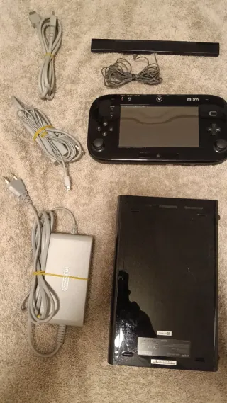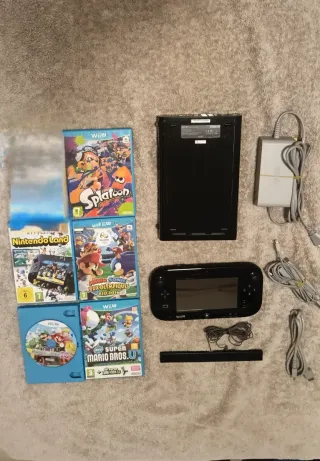Consola Nintendo Wii U negra con 32GB de almacenamiento interno y un usb de otros 128GB para mas memoria si se necesitase, la consola esta en perfectas condiciones, el gamepad como nuevo, aparte se le puso un protector en la pantalla para conservarla como nueva y se le cambio la bateria a una mejor para que aguantase mas a la hora de jugar ya que la original dura apenas unas pocas horas de uso, se puede entregar tal cual o formateada entera,incluye también base de carga para el gamepad original menos el cable de carga que es un cable usb 5 en 1 que compre para cargar también la 3ds, la vendo por que me pille la switch 2 y no la uso