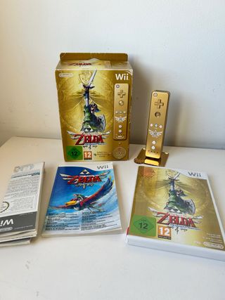 Edición coleccionista del videojuego The Legend of Zelda: Skyward Sword para Wii. Incluye la caja dorada especial y el mando dorado. - Caja especial dorada. - Mando Wii dorado. Con soporte dorado - Juego The Legend of Zelda: Skyward Sword.