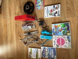 Se vende WII sports, en perfecto funcionamiento. Incluye dos mandos, dos mandos de boxeo, tabla de ejercicios y volante. Juego de WII fit incluido