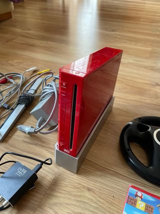 Vendo mi consola Nintendo Wii en color rojo y negro. Incluye tres mandos Wii Remote (dos y otro rosa) dos mandos Wii Nunchuk y el juego Wii Sports y Wii Party. La consola y los accesorios están en buen estado, con señales normales de uso. La tapa de las pilas del mando rosa no es la suya es una tapa de bateria recargable - Consola Wii - 3 mandos Wii Remote - 2 mando Wii Nunchuk - Juego Wii Sports - Juego Wii Party
