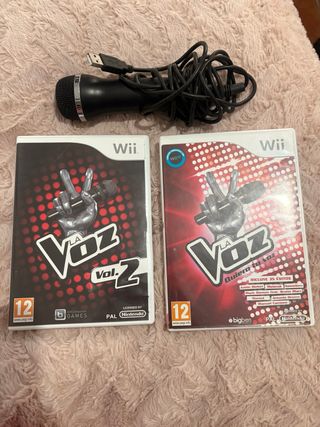 Pack de dos juegos de canto para Wii, La Voz Vol. 2 y La Voz: Quiero tu voz, junto con un micrófono USB. - Incluye La Voz Vol. 2 con licencia PAL Nintendo. - Incluye La Voz: Quiero tu voz con 35 éxitos y licencia PAL Nintendo. - Micrófono USB compatible con Wii.