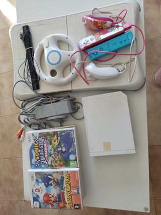 Nintendo Wii + tabla wii fit plus + 2 mandos con protectores + volante + joystick + 2 juegos