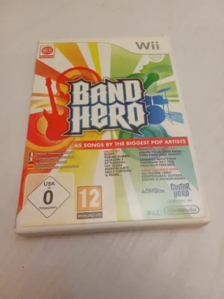 Videojuego para Wii, Band Hero. Disfruta de 65 canciones de los artistas pop más grandes. - Incluye versiones en francés, italiano, alemán y castellano. - Clasificación PEGI 12. - Compatible con todos los mandos de Guitar Hero: guitarras, baterías y micrófonos.