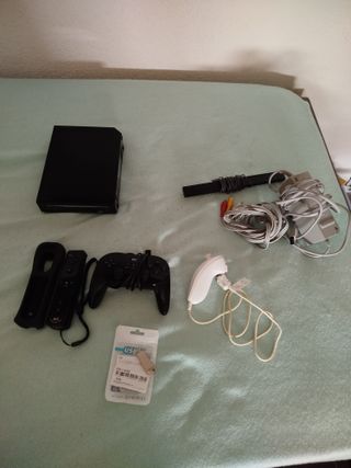 Consola Nintendo Wii en color negro, incluye mando con funda y correa originales, nunchaku original, usb para jugos, adaptador hdmi (si no lo quieres, incluyo cable av original); y cables originales Probada y limpiada, funciona perfectamente Tengo más productos en mi perfil, otras wii, mandos clásicos, gamecube, u otros accesorios Hago envíos por inpost, no negocio