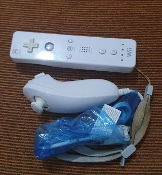 Completo set de mandos para Nintendo Wii, incluye el mando principal y el Nunchuk. - Mando Wii con cruceta, botones A, B, +, -, Home, Power, 1 y 2. - Nunchuk con joystick y botones C y Z. - Correa de seguridad incluida.