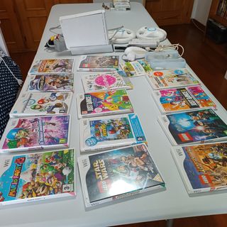 16 juegos + 2 mandos y volantes Wii