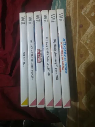 Conjunto de seis videojuegos para Nintendo Wii. - Wii Fit™ Plus - PES 2009 - PRO EVOLUTION SOCCER® - ADON KING EL BOXEO ( solo caratula ) - ULTIMATE BOARD GAME COLLECTION - Big Brain Academy™ para Wii - Mi Experto en Fitness MANTENTE EN FORMA - wii sports Atencion ! El de boxeo no lleva el cd ! Ver fotos !!!