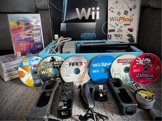 Consola Nintendo Wii lista para horas de diversión, apenas utilizada y muy cuidada. Buen regalo navideño. - Accesorios incluidos: Mando, Nunchuk, Fundas protectoras, Sensor Bar, Wii mote, cables de conexión, base, caja original,todo funciona correctamente. - Incluye 8 juegos: - Wii Sports - Zumba Fitness World Party. - Just Dance. - Call of Duty Modern Warfare. - FIFA 11. - Monopoly Streets. - Wii Play. - Wii Carnival Games. SE ENVÍA EL MISMO DÍA 24 h
