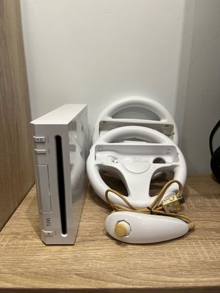 Consola Nintendo Wii en muy buen estado y completamente funcional. Incluye: – Consola Wii blanca – 2 mandos Wii Remote con fundas – 2 Nunchucks – Sensor bar – Cables de alimentación y AV – Varios accesorios (fundas, soportes, etc.) Todo probado y funcionando perfectamente. Ideal para jugar en familia o revivir clásicos de Wii. Precio: 100 € (negociable)