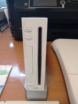 Consola Nintendo Wii en buen estado. Se vende sin mandos. Incluye juego, cable de alimentación, soporte, cable vga y barra de sensor.