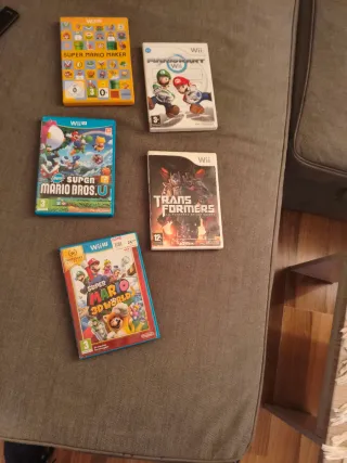 Lote de cuatro videojuegos para consolas Nintendo Wii y Wii U. - Super Mario Maker (Wii) - Mario Kart Wii (Wii) - New Super Mario Bros. U (Wii U) - Super Mario 3D World (Wii U) - Transformers: La Venganza de los Caídos (Wii) No leer ds 3ds psp