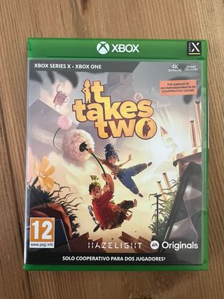 Divertido juego cooperativo en local en perfecto estado. Videojuego It Takes Two para Xbox. - Compatible con Xbox Series X y Xbox One. - Incluye entrega inteligente (Smart Delivery). - Gráficos en 4K Ultra HD. - Experiencia cooperativa online para amigos.