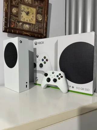 🎮Xbox Series S - En Caja + Mando y Cableado Original Vendo Xbox Series S en su caja original, en perfecto funcionamiento y lista para disfrutar desde el primer día. Consola compacta, potente y perfecta para jugar en digital sin ocupar mucho espacio. ✨Características principales: • Consola de nueva generación rápida y silenciosa ⚡️ • Almacenamiento SSD para cargas ultrarrápidas🚀 • Diseño compacto y moderno 🎮 • Ideal para jugar a títulos actuales con gran rendimiento 📦Incluye: V Caja original V Mando original o V Cableado original (alimentación y HDMI)