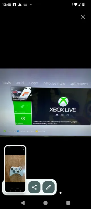 Mando inalámbrico para Xbox 360. Falta el cable.