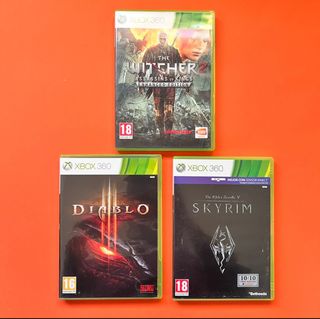 Pack videojuegos para Xbox 360, one o series x - The Witcher 2: Assassins of Kings Enhanced Edition - Diablo 3 - The Elder Scrolls V: Skyrim -versiones pal España en muy buen estado. Importgamepro pal esp Gameproesp retro x360 Microsoft rpg