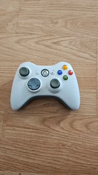 Mando de control para Xbox 360 en color blanco. - Diseño ergonómico. - Botones de alta respuesta. - Sticks analógicos precisos. Mando con bastantes síntomas de desgaste, pero sigue funcionando, puede dar algo de fallo el botón RB. La batería está muerta